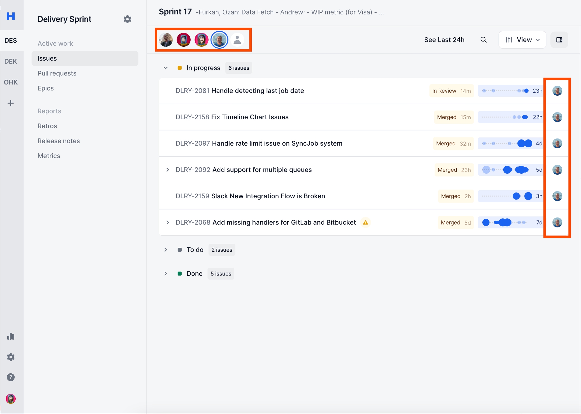 This allows you to see more intentful activities like Git commits and less intentful activities like Jira priority changes.