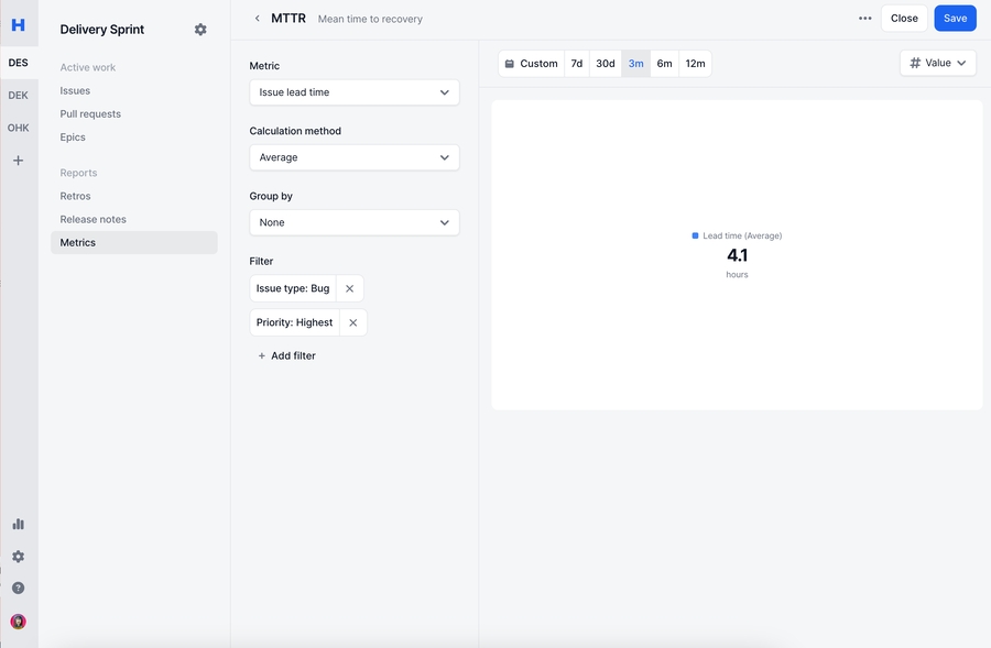Breakdown of review time includes three metrics: first response, rework, and idle completion time. Sum of these three equals the review time metric.