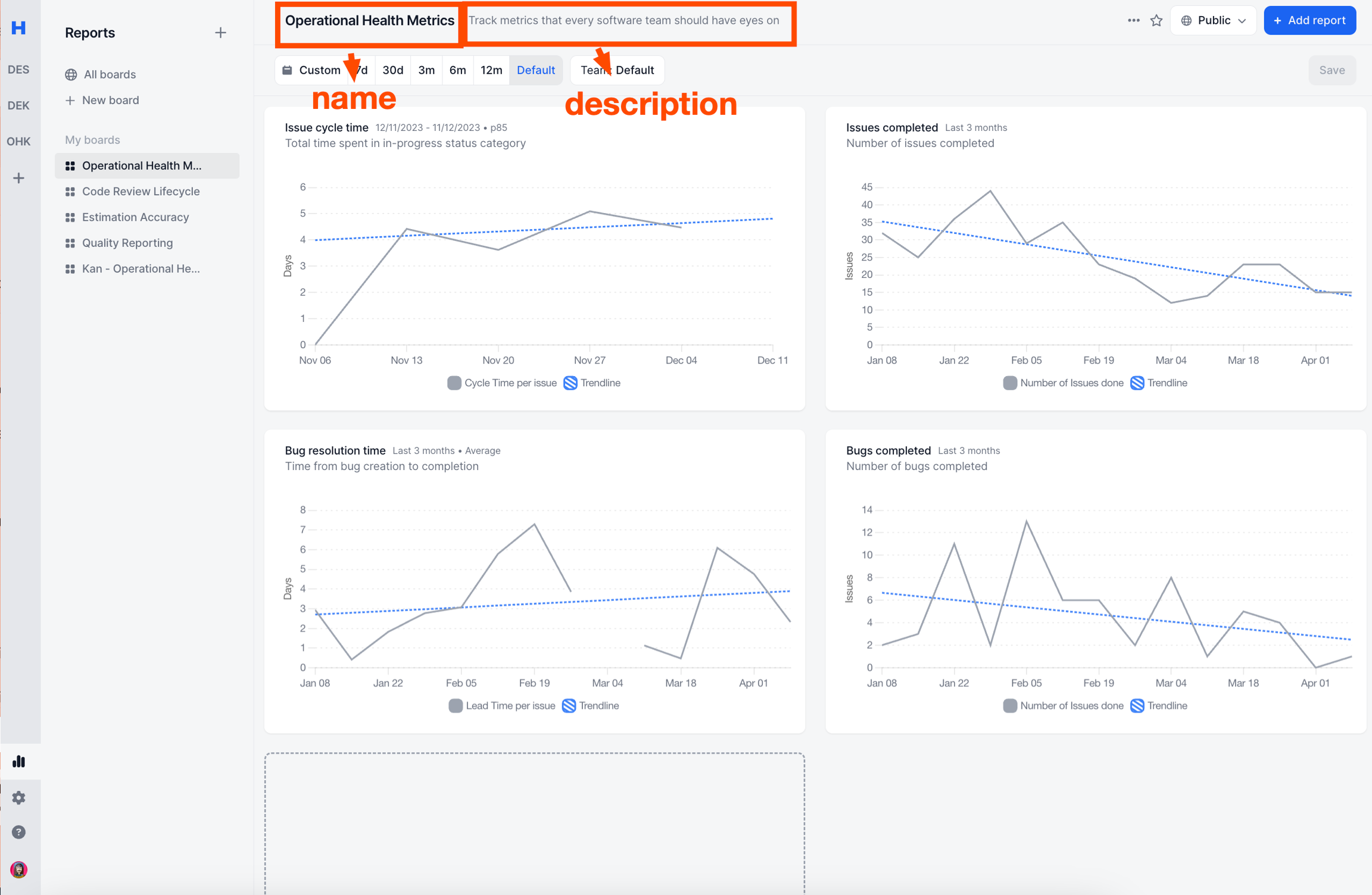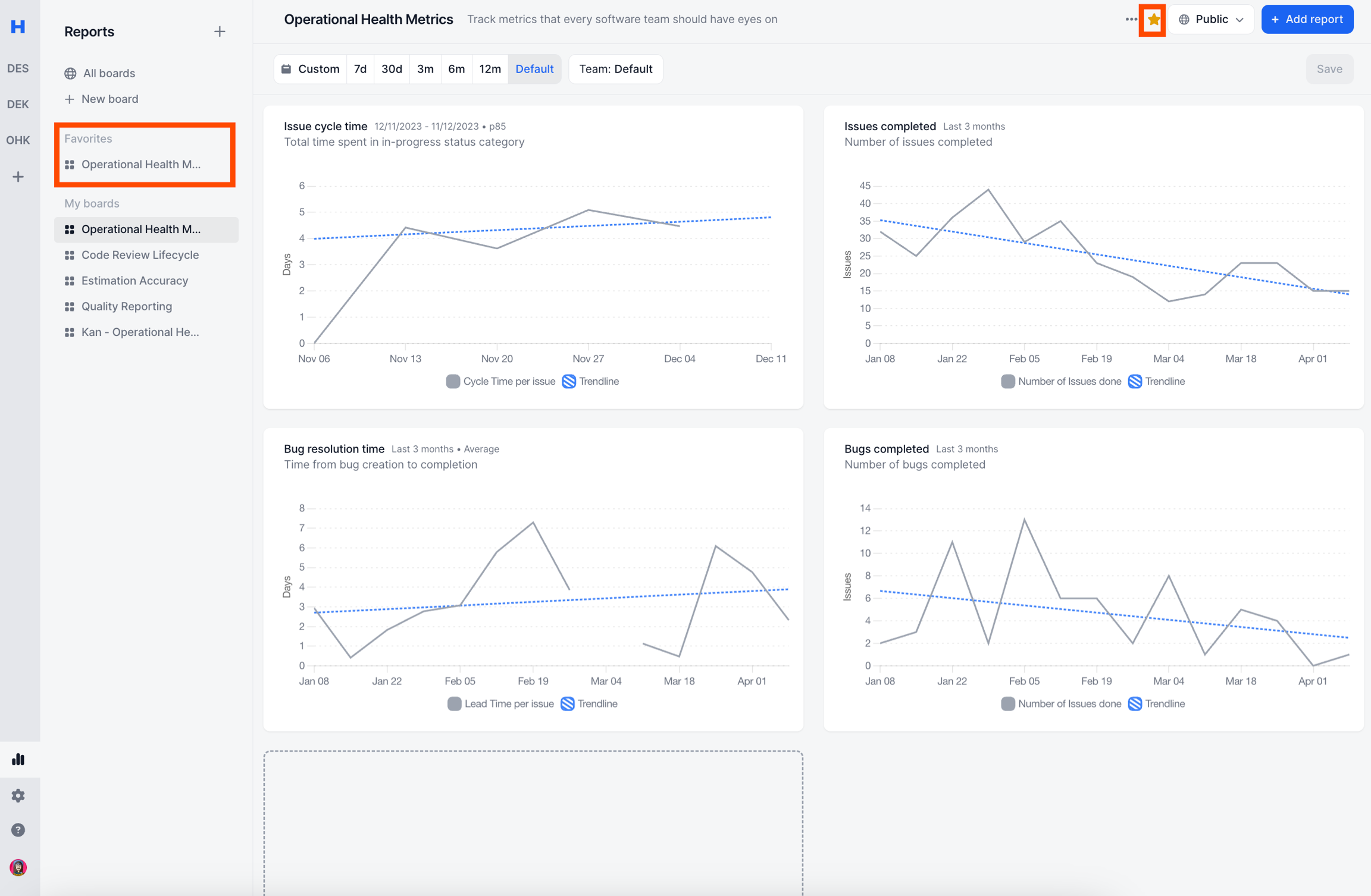 Note: Default - the board will show each graphs original team filter supporting supporting different teams being shown in a single board.