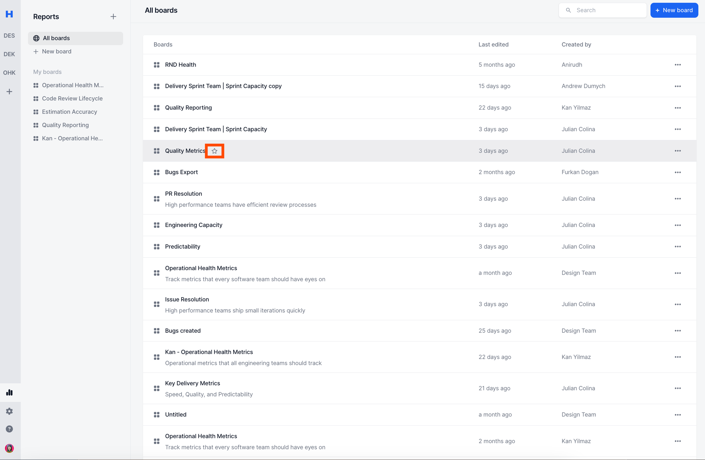 Once you have at least 1 favorite board, on the sidebar "Favorites" section will appear .
