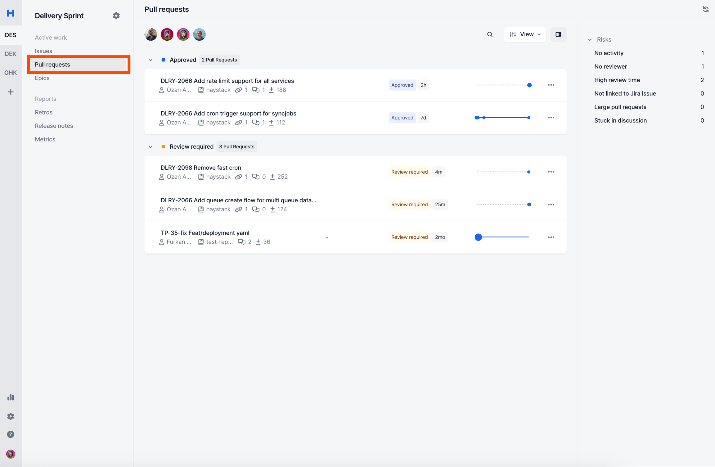 Haystack combines all commits, comments, approvals as a activity bubble in the progress bar. The more activities there are, the bigger the bubble is.