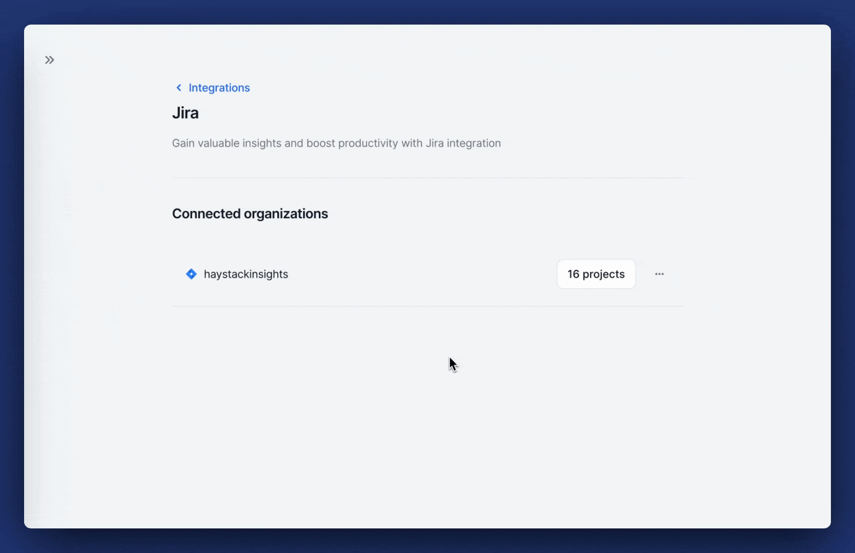 1. Go to [Org settings -> Integrations -> Jira](https://delivery.usehaystack.io/integrations/jira).