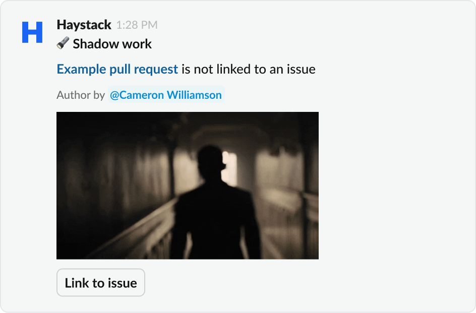 Setup [Slack alerts](https://help.usehaystack.io/setup/teams/alerts) and Haystack will notify you when risk is detected.